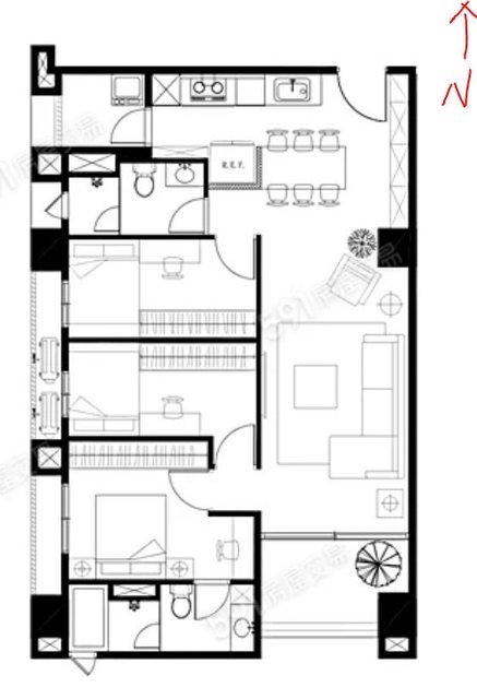 推 atten: 1,客廳再往陽台移可以空出餐廳的位置,然後門口做玄關 11/21 14:42