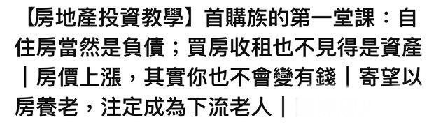 噓 aq2272353712: 房子=負債,到底哪間大學在那邊亂教,教出這樣的學11/26 08:14