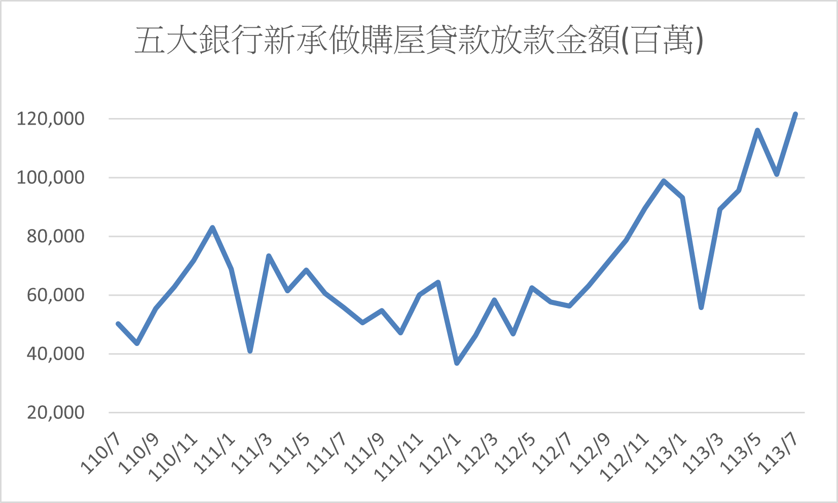 價」同步反映,使得5大銀行新增房貸連3個月破千億元。