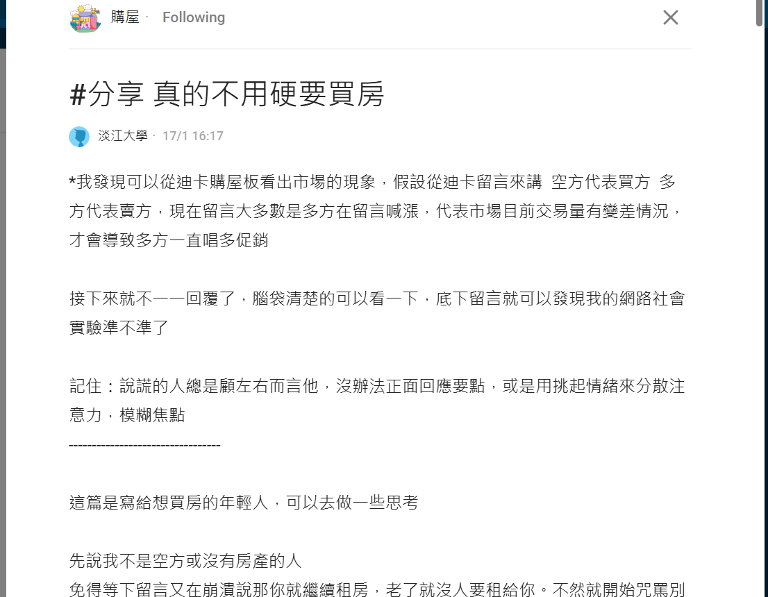 推 william826: 大部人買不起房子 可是貸款被借到緊繃 他腦袋還好嗎 08/23 06:52