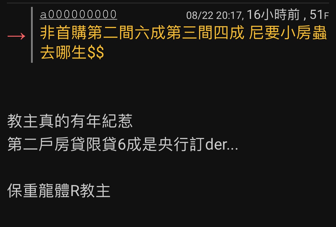 → MizPerfect: 誰跟你說有限貸令,只是排比較久08/23 09:31