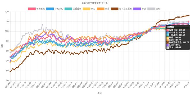 漲最多的是樹三鶯,第二是板橋土城 第三是永和中和。