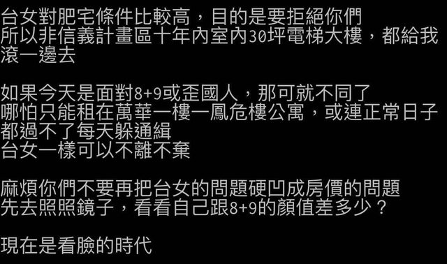 : 說到底造成房市居高不下人人Fomo的心態歸根於台女的要求吧?