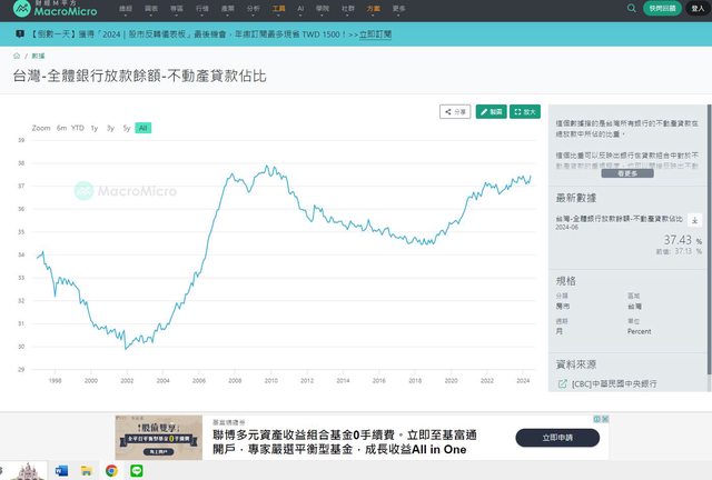37.43%,接近歷史高點的37.9%,到了7月,略降至37.4%,主因是企業放款增加,這也是