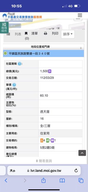 本物件附近地址實價登錄 : 附近無出售,四年前有成交1250左右