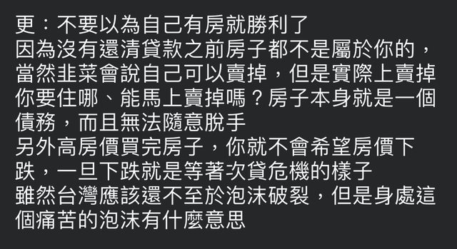 推 deepinheart: 房價漲:資產( 房子價值) = 負債(房貸餘額) + 權 09/03 18:20