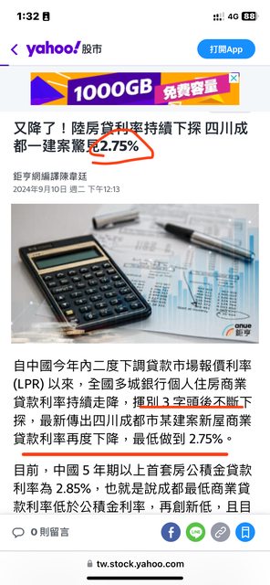→ testutw: 只好出絕招 跟中國的銀行貸款來買台灣房 厲害吧 09/10 14:04