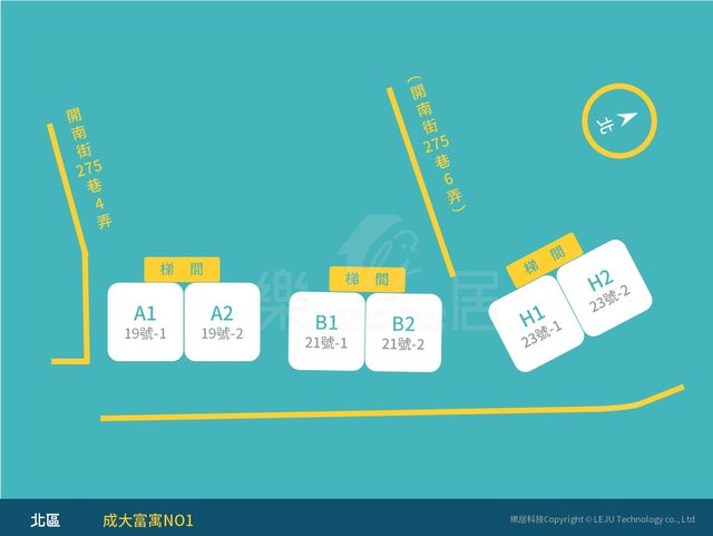 A.必要資訊 。門牌:台南市北區開南街275巷4弄19號 。建設公司:富煜建設 。總戶數: 24 戶 。完工日:民國 104 年 7 月 。總樓高:地上 5 層 。公設比:約 26.79 % 。格局規劃:2-3 房 。學區: 開元國小 永康勝利國小 成功國中 B.次要資訊補充 台南市北區開南街成大富寓NO.1電梯華廈 位於開南街 近東豐路 林森路巷弄內 對面為永康 面柴頭港溪 往開元路方便 家樂福商圈 採買方便 近成功大學生活圈 周邊寧靜舒適 門前綠意走廊步道 小型24戶 一棟8戶 電梯華廈商圈 24小網路監控保全 C.本案優缺點 優點: 周邊環境舒適悠閒 台南鬧區精華區內 開元路家樂福機能好 戶數少 缺點: 門前單行道 柴頭港溪夏日味道較重 D.備註 E.相關連結