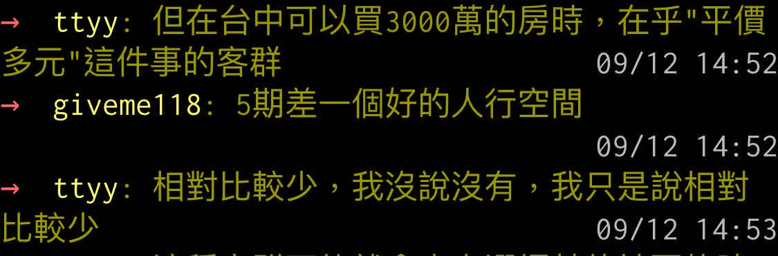 → zouelephant: 台中的房子新舊價格落差太大 千萬不要迷信新房 09/12 12:42