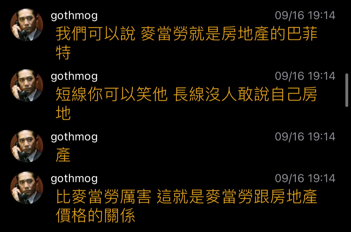 → NodeWay: 反正就這樣 竹北100 板橋120 你覺得青埔多少 自己判斷 09/12 13:12