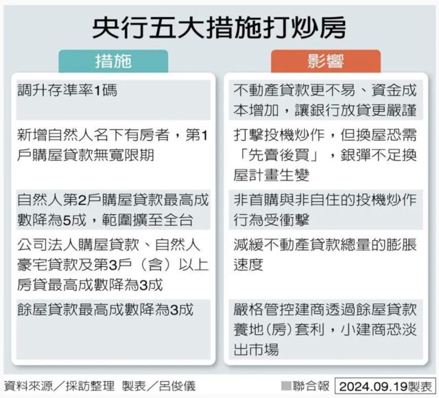 : 成降為三成。第四拳則是針對建商,餘屋貸款最高貸款成數從四成降為三成。相關措施