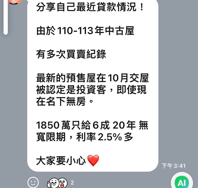 推 Smaragdus: 笑死 忙東忙西搞到首購資格 一查下去還是被判投資客09/20 16:12