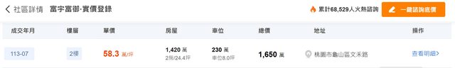 → panlao: 58是富宇富御七月的最近成交的實價 09/20 21:33