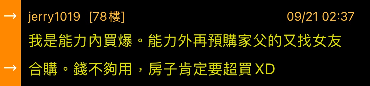 → jl40: 買房自住是重使用 機能 交通 首要 有家庭的 學區 醫療也要 09/21 03:06