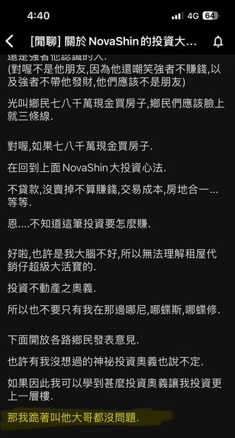 → NovaShin: 跌也跌不到我的成本,漲我也賺,沒開槓桿又買在禁轉前 09/22 17:25
