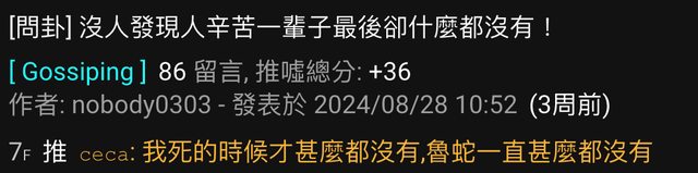 推 start0917: 羨慕啊 我做到死才賺不到三千萬 09/22 23:32