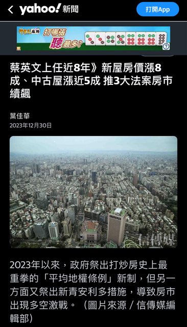 : → MizPerfect: 沒有那麼多繼承,應該可以解 09/24 16:45 : → yeeily: 別想太多!行政院、總裁也是官腔回而已 09/24 16:45 : → SaiWan: https://www.cna.com.tw/news/afe/202409210030.aspx 09/24 16:45 : 推 jumilin927: 人道走廊來了! 09/24 16:45 : → Brioni: 只要一堆人想貸8成就是一路緊繃 09/24 16:47 : 推 aa00788: 下次一定支持國民黨 09/24 16:47 : 推 fivemoonsky8: 每次政府打房=噴,你各位還不懂嗎? 09/24 16:48 : 推 julian42: 繼承族超多吧,只有繼 持分的比較少 09/24 16:48 : 推 poowu: 投機:別給我像是天堂的懸崖 09/24 16:49 : 推 jjjerry: 就說政府超好!繼續噴起來 空空別哭 09/24 16:50 : 推 hitratio: 亢龍有悔 利空出盡 09/24 16:51 : 推 XMASRICCCH: 目前質詢裡面影響最大的應該是之前買第二戶的 09/24 16:52 : 推 paunch: 依政府的尿性,配套就是銀行自己想辦法,一切都是銀行壞壞 09/24 16:52 : → ActionII: 換房的吧 09/24 16:52 : 推 jayemshow: 結果一個禮拜後出更重手 XDDDDDDDDD 09/24 16:52 : → OhtaniHR: 國民黨本來也就是炒房黨啊,看看台中 09/24 16:53 : → OhtaniHR: 建商背景完全不比綠色少 09/24 16:53 : → ActionII: 無寬的影響沒有成數那麼大 09/24 16:53 : 推 SaiWan: https://i.imgur.com/hzYz6Tx.jpeg 09/24 16:55