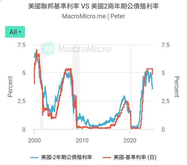 情境2:依照美國兩年期國債先行指標已經預告FED即將瘋狂降息,瘋狂降息都會迎接股市