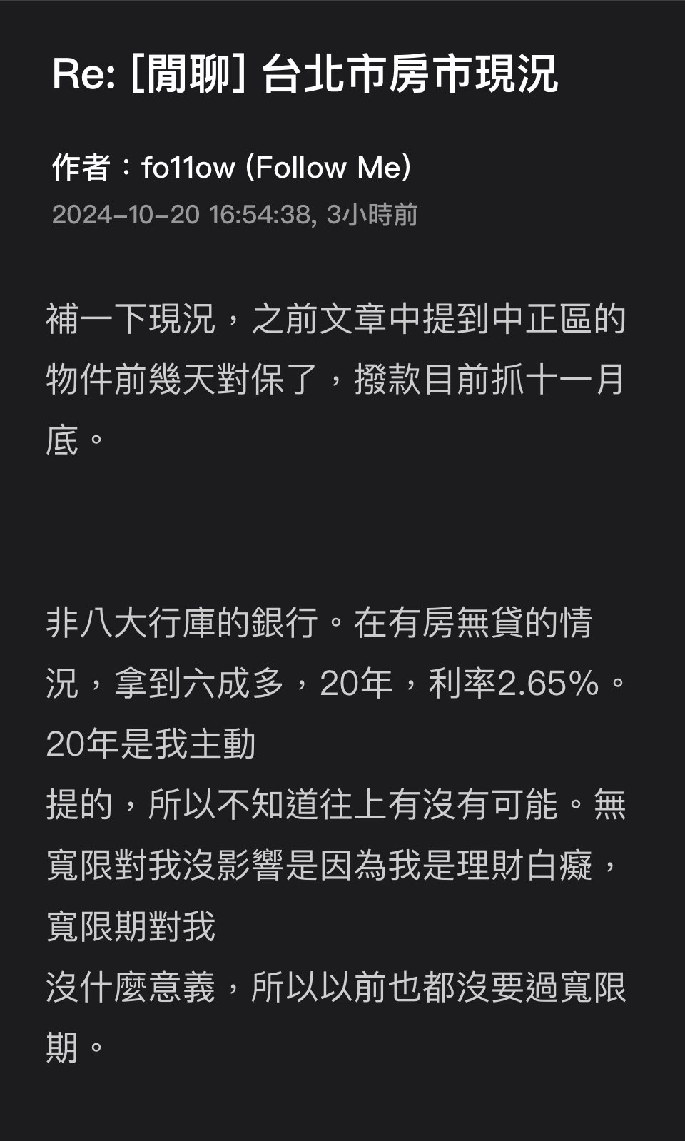 → yiliang1107: 現階段銀行在審查,你就是有房無貸款 10/20 20:29