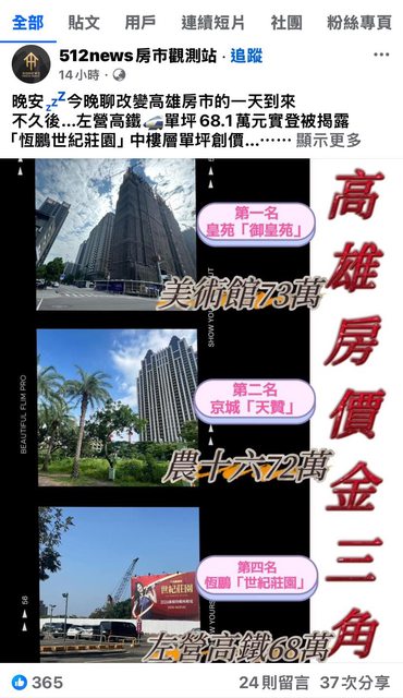 內文:寶佳「世紀莊園」創價單坪68.1萬實登 左營高鐵躍上一級高價區