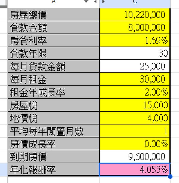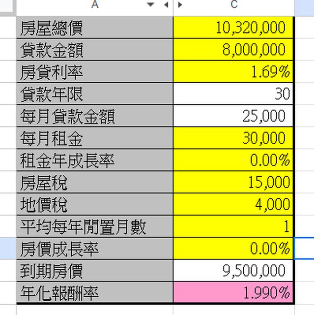 第一個就是你每年的稅金算4萬, 這個真的偏高啦