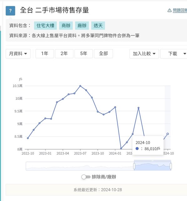 → nckueric: 站上看到最近ㄧ次不到8萬的存量是在2022年8月(79,369) 10/30 19:06