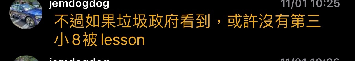 → jemdogdog: 不過如果垃圾政府看到,或許沒有第三小8被lesson 11/01 10:25