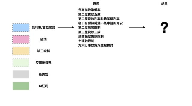 大概畫了一下這幾年房價暴漲的推升原因 時間跟原因只是大概 但基本上沒有超過太多 2019~2023 我剛好跑三峽,文山,江北,中和,三重,新莊 跑一個地方不會只懂一個地方 一定是競爭區域要全部都懂 因為常會有看完三重來看板橋 看完永和來看中和 或是帶客人去買新竹青埔 所以市場算是蠻熟悉 房版從當年沒什麼人看 到前一陣子最熱的時候可以擠到前4名 最大的原因就是"買了你會賺錢" 台灣人很現實 持有會賺錢,排隊都去買 持有不會賺錢,送我都不要 所以如果房地產以使用的角度來看 我一直建議有需要就買 但如果以金融的角度來看 那就要慎選進場的時間 https://i.imgur.com/bpSy4aH.png