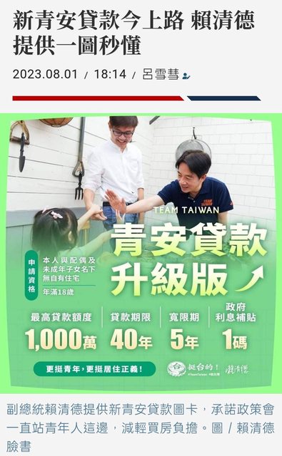 推 chouvincent: 最挺年輕人買房的賴總統 改革加油不能停! 11/06 22:29