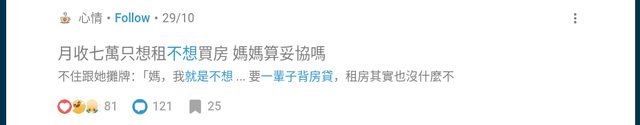 : 不過原PO媽媽秉持「有房才安心」的理念,不斷催促原PO買房,直到他和家人攤牌,「我