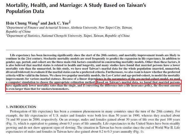 推 qp7281: 結論就是有婚男比較長壽,不管是因為相對有錢、比較有社 11/13 10:51
