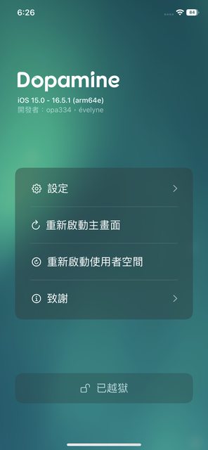 多巴胺 2.0:iOS 15.0 - 16.6.1,處理器 A9 以上的越獄工具