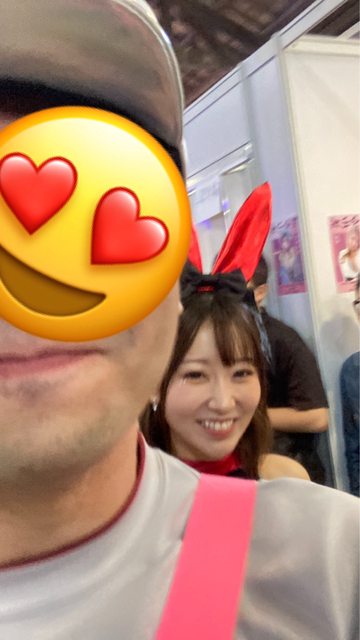 ,我也跟她打招呼,我想要買雨宮的週邊支持她,但是苦無現金,就趕快跑到外面去提款