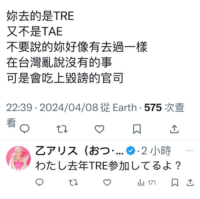 推 muscatsss: 一劍他們團隊是幫忙做TRE的,然後TRE跟TAE兩個本來就在04/09 12:12