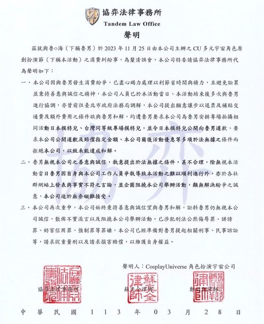 推 alen70169: 你的平行報導應該要把律師事務所的聲明內容補在內文 04/09 17:01