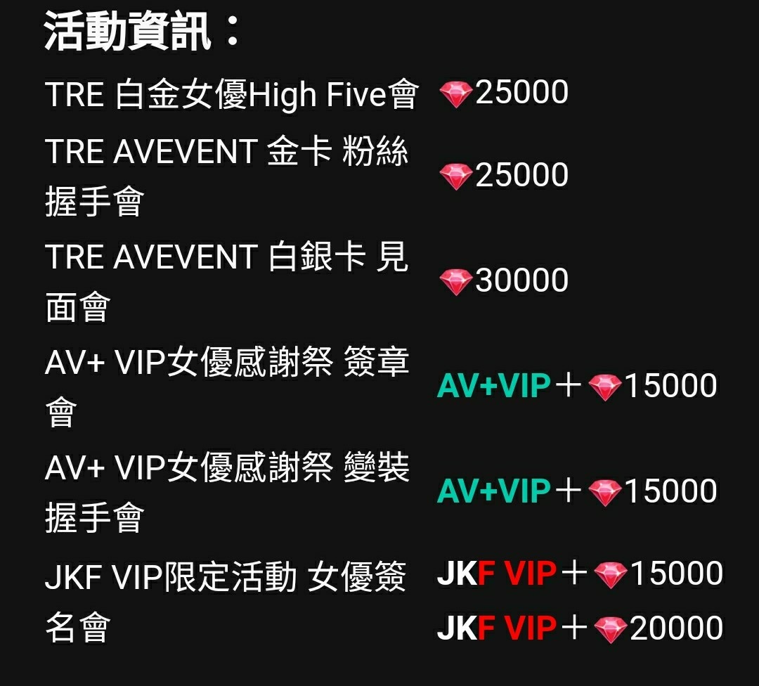 → saiulbb: 章、AV+,等額外活動要儲值紅鑽額外購買 05/23 18:31