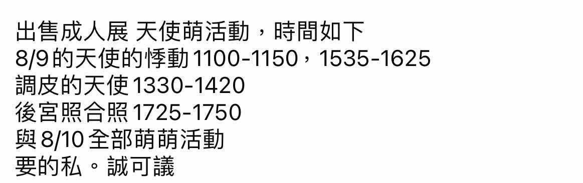 → alen70169: 你是不是忘記上個月天使見面會價錢開太高大家不去07/27 09:57