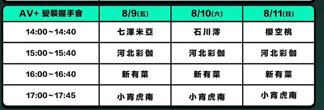 推 BeAstLIN12: 請問一下AV+舞台 有時間表嗎? 08/10 11:00