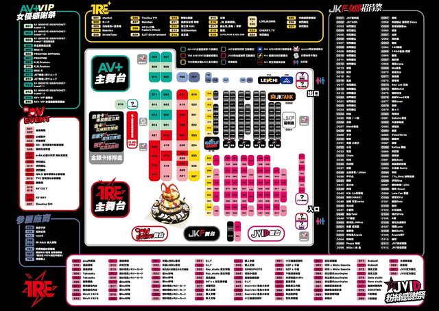 如:AV WAY、AV8D、KMP、JET映像…族繁不及備載,沒列到的攤位不見得是沒有,請自行