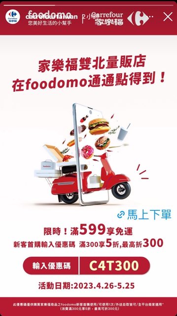 推 archer9081: 剛剛點開發現foodomo家樂福自取也可以 49.216.224.169 04/26 15:41