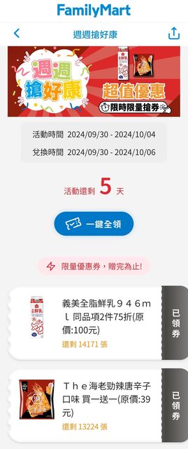 推 sequence: app「優惠趣」點進去就有頁面可領券了 114.27.37.81 09/30 22:57