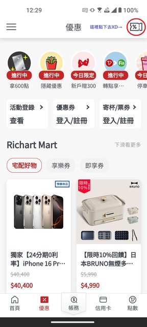 推 yao03911: 找到了 不是優惠券是右上圖示 36.230.201.127 10/01 12:28