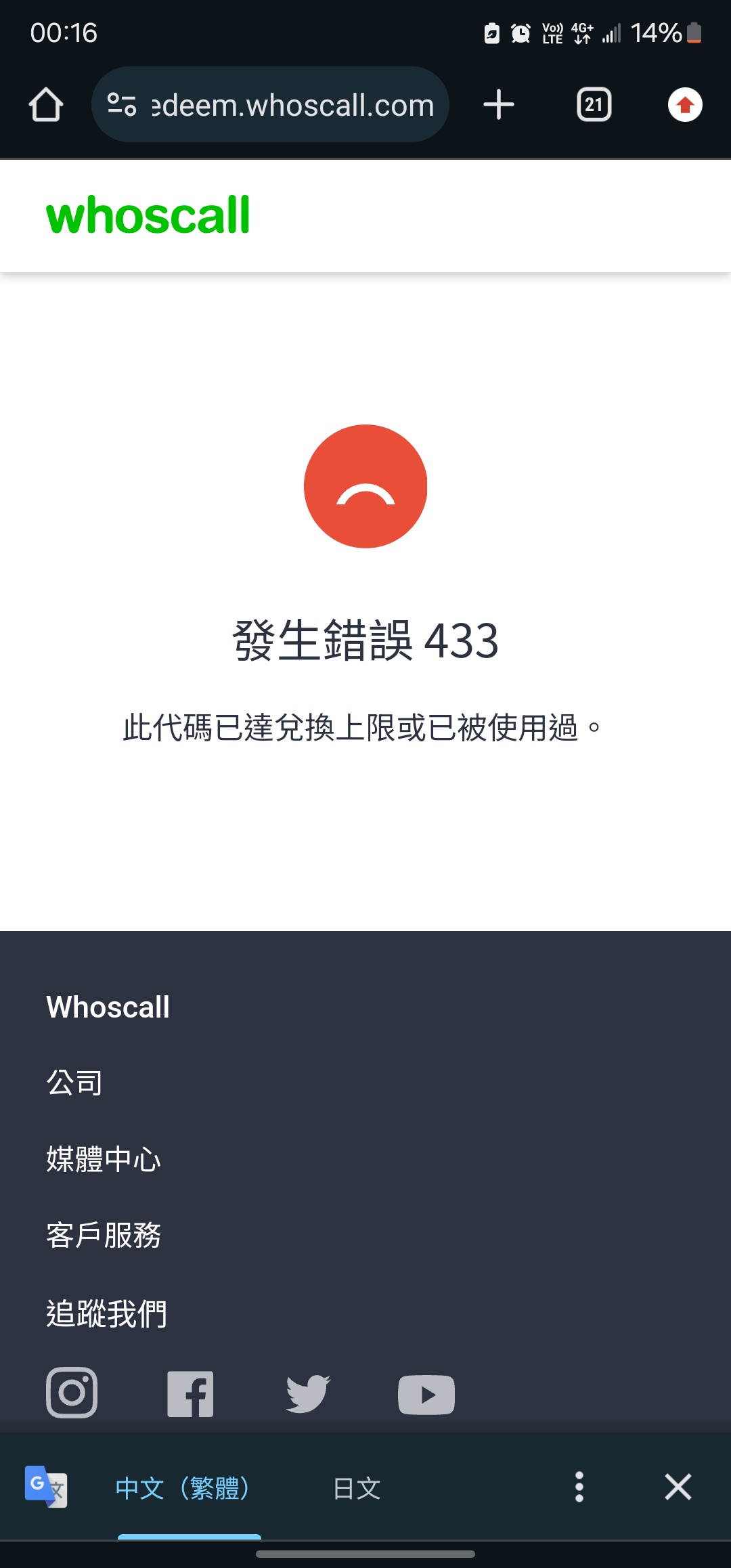 → bemily32: 此代碼已達兌換上限或已被使用過。122.116.200.133 10/11 04:21
