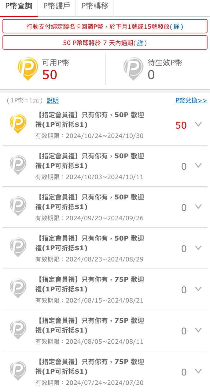 推 hlwh: 發現10/11過期的100p幣 112.78.89.143 10/24 15:54