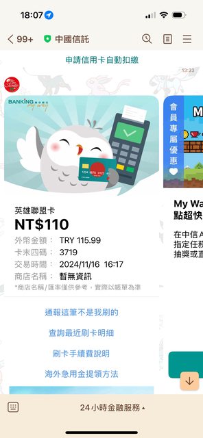 → toymilaran: 12/12 前更新信用卡,現在在高興什麼 118.99.248.81 11/16 18:29