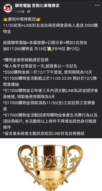 噓 tony5110: 17000購物金? 這代表他還保留可玩空間 223.137.97.180 11/26 22:16