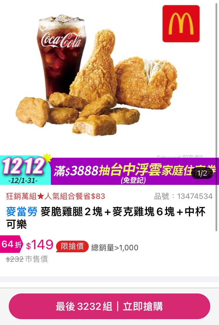 推 movielover: 雞腿補貨了 39.9.198.238 12/01 18:30