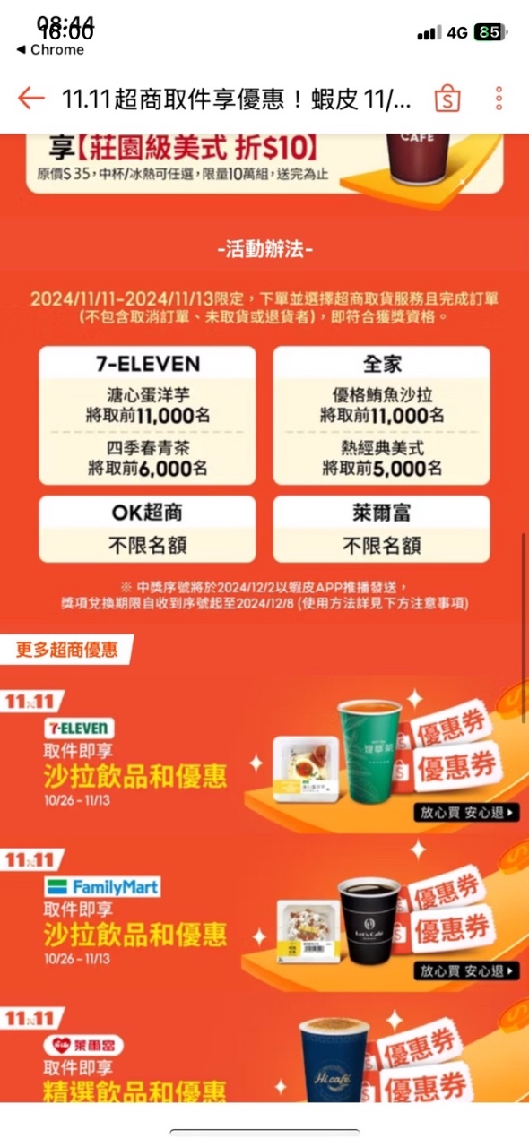 推 DragonRai: 蝦皮雙11全家取貨我拿到免費熱美式,沒 219.70.230.34 12/02 17:08