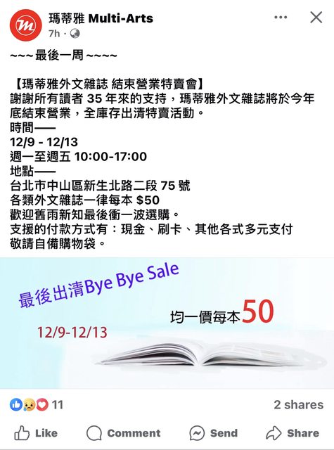 標題[情報] 瑪蒂雅外文雜誌 結束營業特賣會