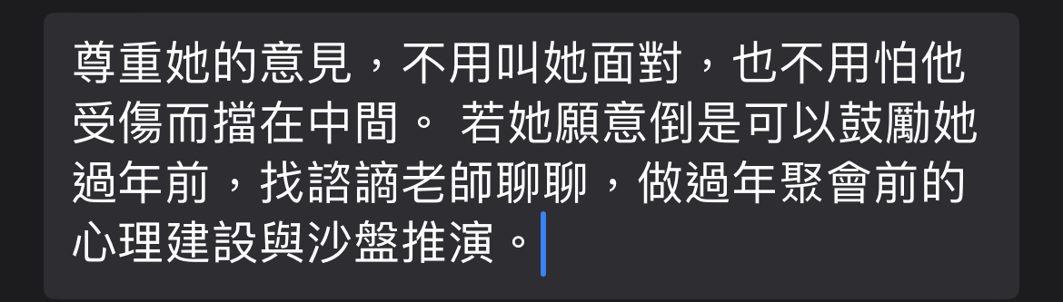 推 Mareencat : 尊重太太 不強迫太太與親人相處 01/19 10:49